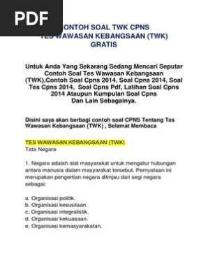 Soal cpns soal dan jawaban materi soal cpns tes wawasan kebangsaan (twk) download.